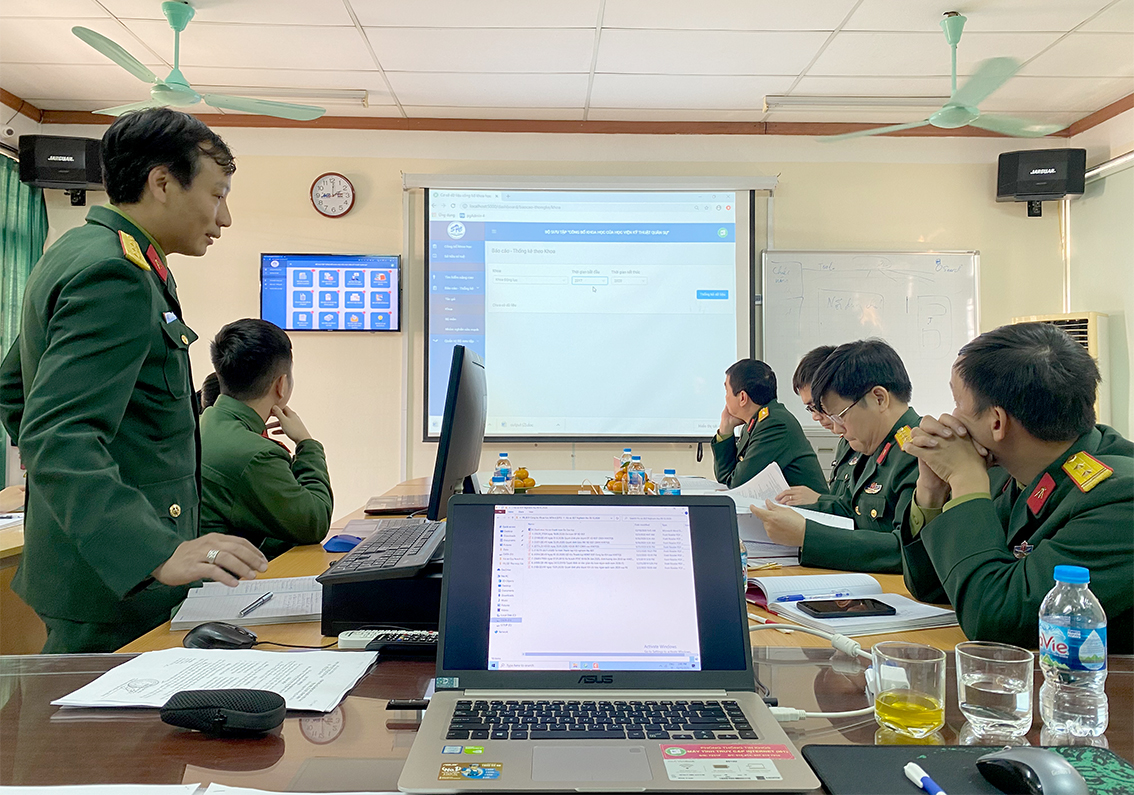 Thực hiện Quyết định số 4315/QĐ-HV ngày 01/12/2020 của Thủ trưởng Học viện, ngày 10/12/2020, Phòng Thông tin KHQS đã tổ chức nghiệm thu Bộ sưu tập “Công bố khoa học của Học viện KTQS” (BST CBKH). Hội đồng nghiệm thu gồm: Đại tá Nguyễn Hoàng Vũ – Trưởng phòng Thông tin KHQS, Chủ tịch Hội đồng; Thượng tá Trần Đức Tăng – Phó Trưởng phòng KHQS, Ủy viên; Trung tá Trần Nguyên Ngọc – Trưởng phòng HTQT & QLLHSQS, Ủy viên; Trung tá Vũ Kim Sơn – Trợ lý Ban Tạp chí KH&KT, Ủy viên Thư ký; Thiếu tá CN Nguyễn Văn Bình – Ban Tài chính, Ủy viên. Tham dự buổi nghiệm thu còn có Thiếu tá Phạm Thái Hưng – Trưởng Trung tâm CNTT và Nhóm thực hiện nhiệm vụ xây dựng BST.