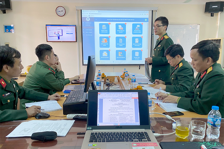 Phát biểu kết luận buổi nghiệm thu, Đại tá Nguyễn Hoàng Vũ đánh giá cao sự nỗ lực của Nhóm thực hiện cũng như sự phối hợp giữa các đơn vị trong quá trình thực hiện nhiệm vụ. Bộ sưu tập “Công bố khoa học của Học viện KTQS” sẽ là nơi lưu trữ “Tài sản trí tuệ” của Học viện KTQS kể từ khi thành lập; là một CSDL số lớn phục vụ cho việc “Chuyển đổi số đại học”, xây dựng “Nhà trường thông minh”. Ngoài ra, BST cũng là công cụ phục vụ công tác chỉ huy – điều hành của Học viện; tư liệu số phục vụ công tác đánh giá trường cũng như đánh giá, đề nghị mở mới các CTĐT; cung cấp minh chứng số trực tuyến phục vụ nhu cầu của cán bộ, giáo viên…