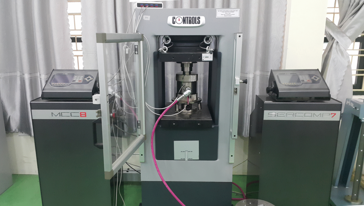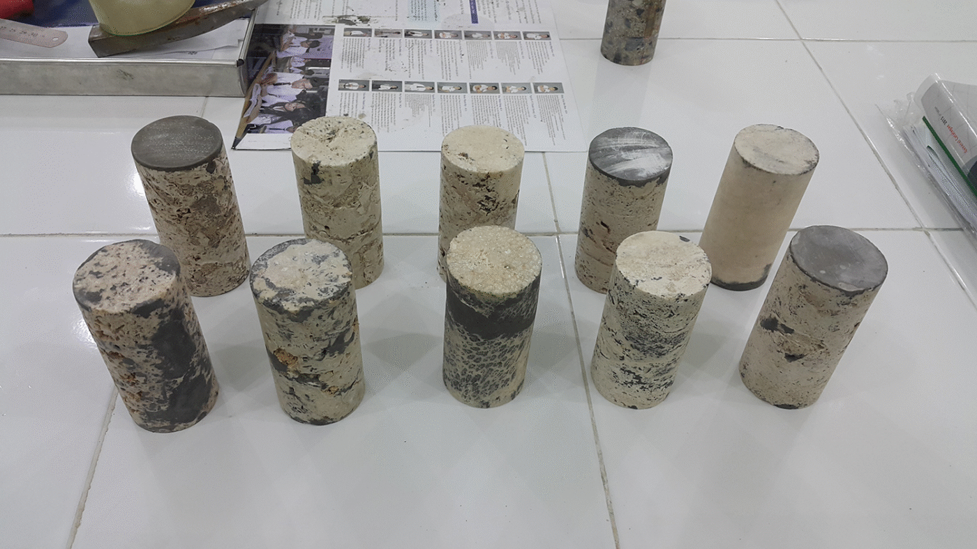 Mẫu đá san hô đã được đưa vào máy nén 3 trục