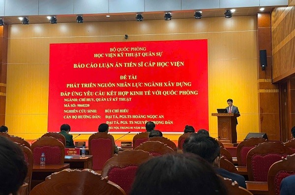 Chiều 30/01/2026, Phòng Sau đại học phối hợp với Khoa Chỉ huy tham mưu kỹ thuật tổ chức bảo vệ luận án tiến sĩ cấp Học viện cho nghiên cứu sinh Bùi Chí Hiếu, Khóa 37. Luận án có tên: “Phát triển nguồn nhân lực ngành xây dựng đáp ứng yêu cầu kết hợp kinh tế với quốc phòng”, thuộc ngành Chỉ huy, quản lý kỹ thuật (mã số 9.86.02.20), do Đại tá PGS. TS Hoàng Ngọc An và Đại tá PGS. TS Nguyễn Trọng Dân (Học viện KTQS) hướng dẫn khoa học.