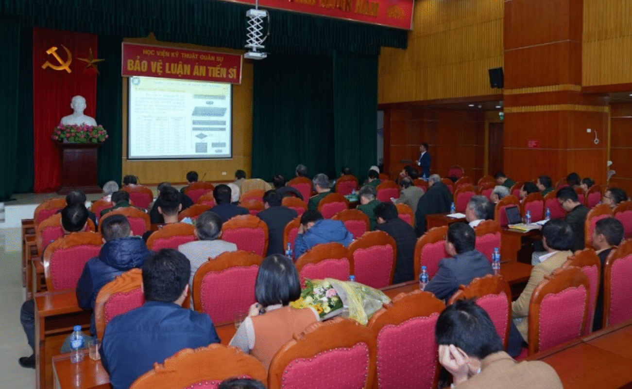 Hội đồng đánh giá luận án có các thành viên: GS. TSKH Đỗ Sanh – Đại học BKHN, Chủ tịch Hội đồng; Đại tá PGS.T S Nguyễn Viết Tân – Học viện KTQS, Thư ký; PGS. TS Vũ Liêm Chính – Đại học Xây dựng, Phản biện 1; PGS. TS Nguyễn Văn Vịnh – Đại học GTVT, Phản biện 2; Đại tá PGS. TS Vũ Công Hàm – Học viện KTQS, Phản biện 3; PGS. TS Bùi Hải Triều – Đại học CNGTVT, Ủy viên; PGS. TS Lê Hồng Quân – Đại học Công nghiệp HN, Ủy viên.