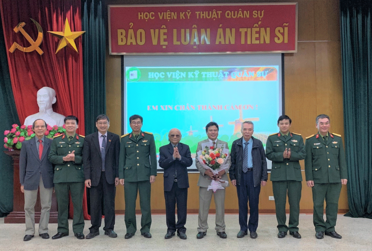 Hội đồng đánh giá luận án tiến sĩ cấp Học viện gồm các thành viên: GS. TSKH Nguyễn Xuân Quỳnh – Hội đồng chức danh GSNN, Chủ tịch Hội đồng; GS. TS Lê Hùng Lân – Trường Đạo học GTVT, Phản biện 1; PGS. TS Nguyễn Văn Liễn – Trường Đại học BKHN, Phản biện 2; Đại tá PGS. TS Nguyễn Thanh Tiên – Tổng cục Kỹ thuật, Phản biện 3;  Đại tá PGS. TS Phạm Trung Dũng – Học viện KTQS, Thư ký; GS. TS Nguyễn Doãn Phước – Trường Đại học BKHN, Ủy viên; Đại tá PGS. TS Trần Xuân Kiên – Viện KH&CNQS, Ủy viên.