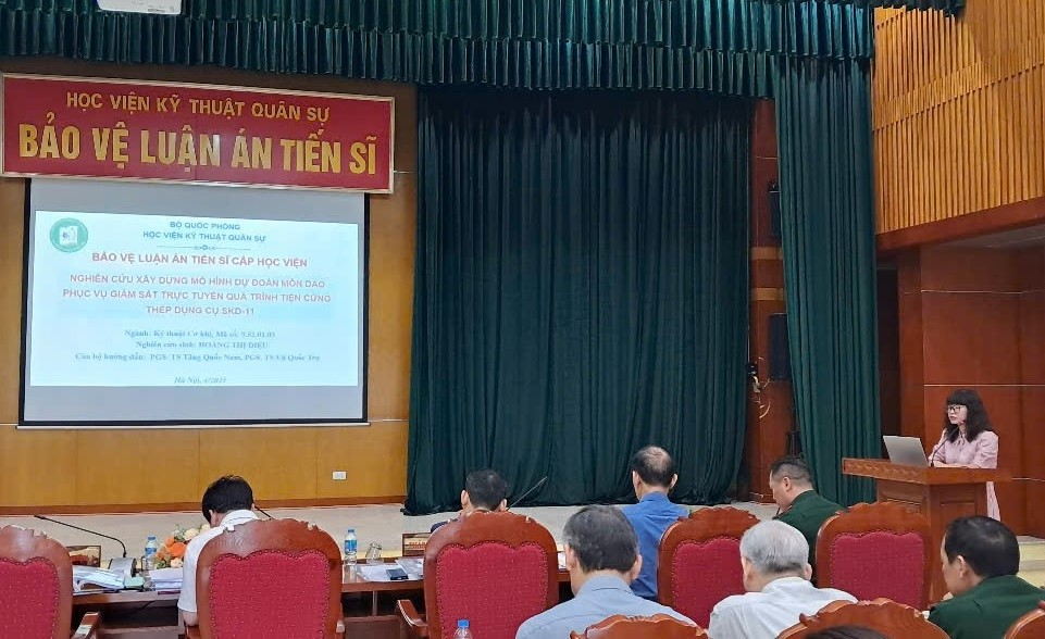 Sáng 19/4/2025, Phòng Sau đại học phối hợp với Khoa Cơ khí tổ chức bảo vệ luận án tiến sĩ cấp Học viện cho Nghiên cứu sinh (NCS) Hoàng Thị Diệu, Khóa 37 về đề tài “Nghiên cứu xây dựng mô hình dự đoán mòn dao phục vụ giám sát trực tuyến quá trình tiện cứng thép dụng cụ SKD-11”, ngành Kỹ thuật cơ khí, mã số 9.52.01.03 do Đại tá PGS. TS Tăng Quốc Nam và Đại tá PGS. TS Vũ Quốc Trụ – Học viện KTQS hướng dẫn.