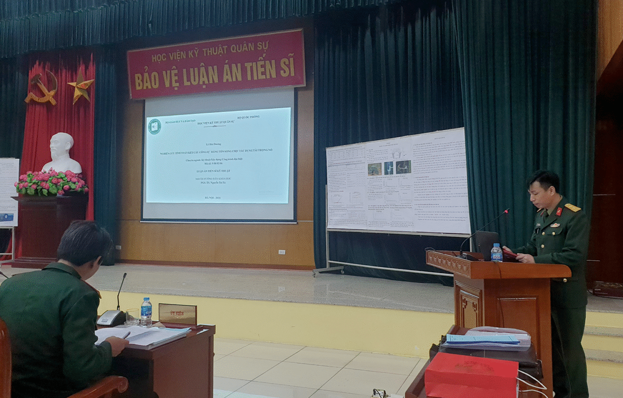 Ngày 27/02/2021, Học viện KTQS đã tổ chức bảo vệ luận án tiến sĩ (LATS) cấp Học viện cho NCS Lê Hải Dương về đề tài: “Nghiên cứu tính toán kết cấu công sự bằng tôn sóng chịu tác dụng tải trọng nổ”; ngành Kỹ thuật Xây dựng công trình đặc biệt; mã số 9.58.02.06, do Đại tá PGS. TS Nguyễn Trí Tá – Học viện KTQS hướng dẫn.