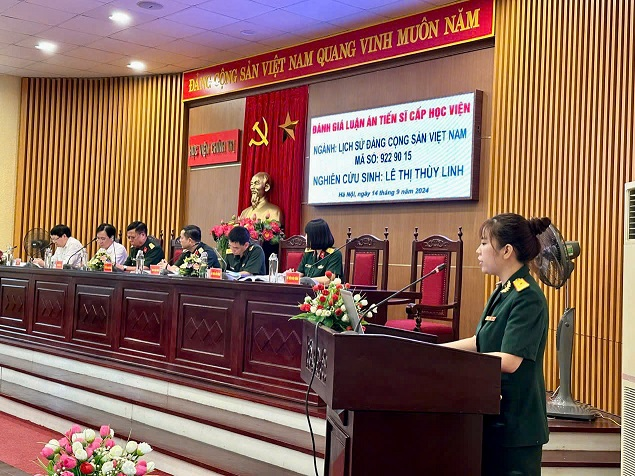 Chiều 14/9/2024, nghiên cứu sinh (NCS) Lê Thị Thùy Linh – Bộ môn Lịch sử Đảng/Khoa Công tác Đảng, Công tác Chính trị đã bảo vệ thành công luận án tiến sĩ (LATS) tại Học viện Chính trị với đề tài: “Đảng bộ tỉnh Phú Thọ lãnh đạo xây dựng đời sống văn hóa cơ sở từ năm 2010 đến năm 2020”, ngành Lịch sử Đảng Cộng sản Việt Nam, mã số 9229015, do Đại tá TS Nguyễn Văn Trường và Đại tá PGS. TS Nguyễn Xuân Tú – Học viện Chính trị hướng dẫn.
