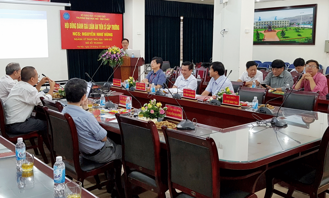 Sáng 29/7/2019, tại trường Đại học Mỏ Địa chất (phường Đức Thắng, Bắc Từ Liêm, Hà Nội) đã tổ chức buổi bảo vệ luận án tiến sĩ cấp Trường cho NCS Nguyễn Như Hùng – giáo viên Bộ môn Trắc địa – Bản đồ/Viện KTCTĐB, Học viện KTQS. Đề tài luận án “Nghiên cứu đề xuất phương pháp xác định nồng độ bụi PM10 trong không khí khu vực đô thị Việt Nam từ dữ liệu ảnh vệ tinh” được NCS Nguyễn Như Hùng thực hiện tại Bộ môn Đo ảnh và viễn thám, Khoa Trắc địa – Bản đồ và Quản lý đất đai, trường Đại học Mỏ Địa chất. Hội đồng đánh giá luận án TS cấp trường gồm các chuyên gia đầu ngành về lĩnh vực Trắc địa – Bản đồ đến từ các trường Đại học, Viện nghiên cứu, cơ quan chuyên ngành khác nhau trong cả nước.