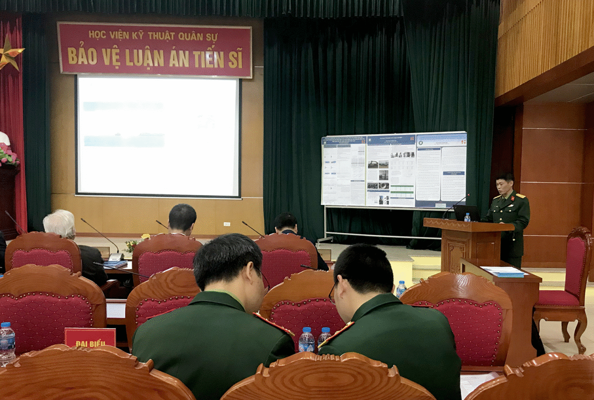 Hội đồng đánh giá LATS cấp Học viện gồm các thành viên: Đại tá GS. TS Chu Văn Đạt – Học viện KTQS, Chủ tịch Hội đồng; GS. TS Trần Văn Tuấn – Trường ĐH Xây dựng Hà Nội, Phản biện 1; PGS. TS Nguyễn Văn Vịnh – Trường ĐH Giao thông vận tải, Phản biện 2; PGS. TS Bùi Hải Triều – Trường ĐH Công nghệ GTVT, Phản biện 3; Đại tá PGS. TS Nguyễn Viết Tân – Học viện KTQS, Thư ký; TS Bùi Việt Đức – Học viện Nông nghiệp VN, Ủy viên; TS Nguyễn Văn Thịnh – Viện KH&CN GTVT, Ủy viên.