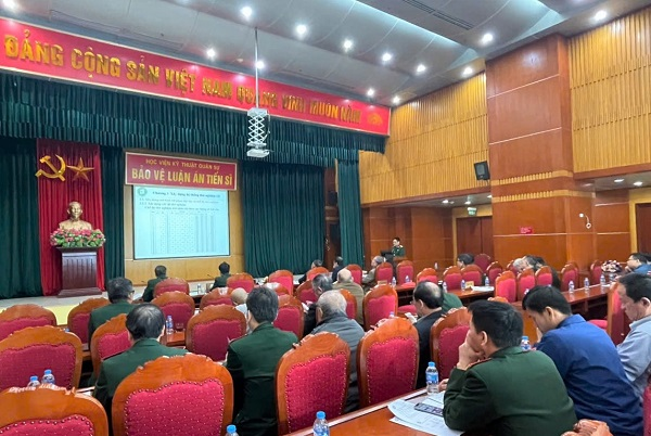 Hội đồng đánh giá luận án tiến sĩ cấp Học viện gồm các thành viên: Đại tá PGS. TS Nguyễn Trung Kiên – Học viện KTQS, Chủ tịch Hội đồng; PGS. TS Phạm Hữu Tuyến – Đại học BKHN, Phản biện 1; PGS. TS Lê Văn Điểm – Trường ĐH HHVN, Phản biện 2; PGS. TS Vũ Ngọc Khiêm – Trường ĐH CNGTVT, Phản biện 3; Thượng tá PGS. TS Lương Đình Thi – Học viện KTQS, Thư ký; Đại tá GS. TS Đào Trọng Thắng – Học viện KTQS, Ủy viên; PGS. TS Trần Thị Thu Hương – Đại học BKHN, Ủy viên.