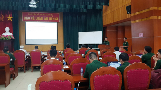 Hội đồng đánh giá luận án có các thành viên: Thiếu tướng, PGS. TS Vũ Thanh Hải – Học viện KTQS, Chủ tịch Hội đồng; Đại tá, TS Lê Hải Nam – Học viện KTQS, Thư ký; PGS. TS Trịnh Anh Vũ – ĐH Công nghệ/ĐH Quốc gia Hà Nội, Phản biện 1; PGS. TS Lê Nhật Thăng – Học viện Công nghệ Bưu chính Viễn thông, Phản biện 2; PGS. TS Hoàng Mạnh Thắng – Đại học Bách khoa Hà Nội, Phản biện 3; Đại tá, PGS. TS Bạch Nhật Hồng – Viện KH&CN Quân sự, Ủy viên; Thiếu tá, PGS. TS Nguyễn Quốc Định – Học viện KTQS, Ủy viên.