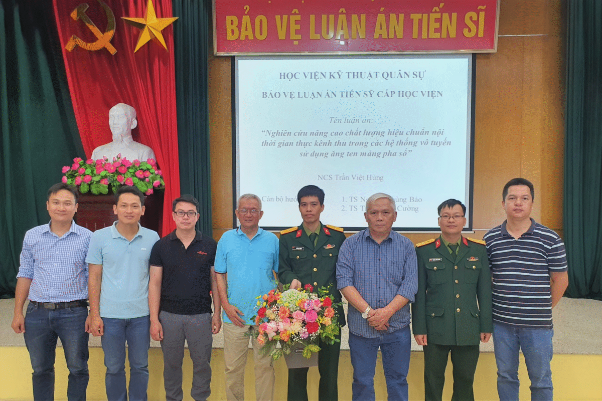 Sáng 17/11/2022, Phòng Sau đại học phối hợp với Khoa Vô tuyến điện tử tổ chức bảo vệ luận án tiến sĩ cấp Học viện cho NCS Trần Việt Hùng với đề tài “Nghiên cứu nâng cao chất lượng hiệu chuẩn nội thời gian thực kênh thu trong các hệ thống vô tuyến sử dụng ăng ten mảng pha số”, ngành Kỹ thuật điện tử mã số: 9 52 02 03 do Đại tá TS Nguyễn Phùng Bảo (Học viện KTQS) và Đại tá TS Trịnh Đình Cường (Học viện KTQS) hướng dẫn.