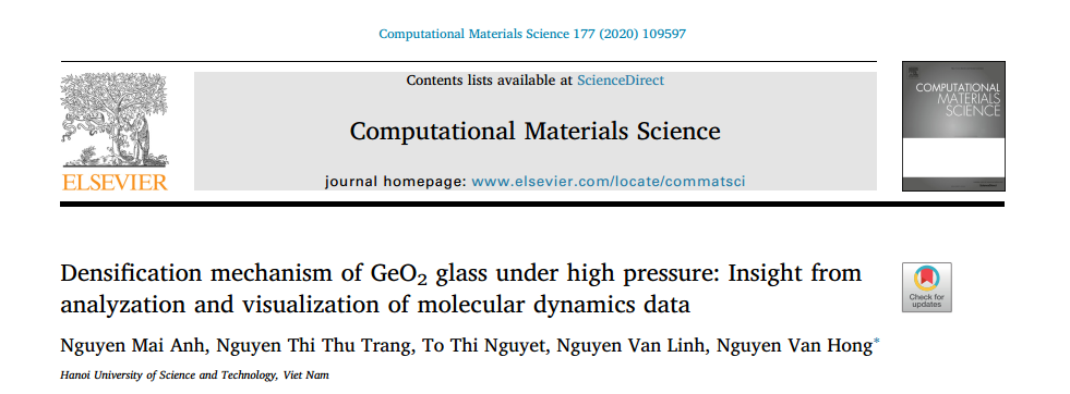 Trong các ngày từ 3/5 đến 5/5/2020, Đại học Bách khoa Hà Nội đã tổ chức Hội nghị Báo cáo NCKH cấp Trường. Trong Hội nghị lần này, Trung sĩ Nguyễn Văn Linh tham gia báo cáo đề tài “Cơ chế nén của vật liệu thủy tinh GeO2 dưới áp suất cao”. Đề tài đạt giải Nhì và được đề nghị xét giải cấp Bộ, đây cũng là đề tài từng được công bố trên tạp chí quốc tế thuộc danh mục ISI vào đầu tháng 2 vừa qua. Đề tài là một phần trong chuỗi dự án nghiên cứu về hệ vật liệu thủy tinh có cấu trúc mạng với các tính chất cơ-lý-hóa thích hợp trong lưu trữ và xử lý chất thải độc hại. Mẫu GeO2 thủy tinh bao gồm 5499 nguyên tử (1833 Ge và 3666 O) ở 300 K và dải áp suất 0 – 100 GPa được khảo sát thông qua mô phỏng động lực học phân tử. Trong nghiên cứu về hệ thủy tinh GeO2 này, thế OE, thuật toán Verlet cùng với điều kiện biên tuần hoàn được sử dụng để tiến hành khảo sát. Trong quá trình khảo sát, nghiên cứu đã làm sáng tỏ mối liên hệ tương quan giữa các đặc trưng như phân bố góc, phân bố xuyên tâm và cơ chế hình thành các đám phân tử trong vi cấu trúc GeO2 thủy tinh.