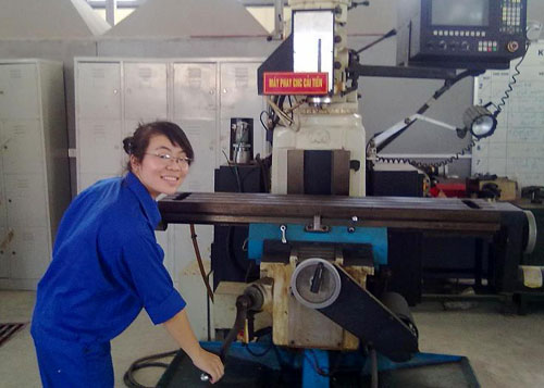 Công việc khó, song lại thú vị nhất với con gái học cơ khí là mỗi lần cầm que hàn ghép những tấm kim loại với nhau, nhiệt độ lên đến 7.000 độ C, tất cả phải tuân thủ nghiêm ngặt quy trình an toàn lao động. Có niềm say mê đặc biệt với những mối hàn, Thủy cùng với người bạn học thiết kế ra “Máy làm sạch mối hàn bằng phương pháp điện hóa” và giành giải Khuyến khích cuộc thi Tài năng khoa học trẻ Việt Nam năm 2014.