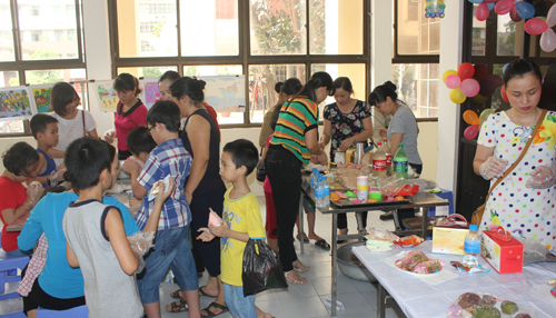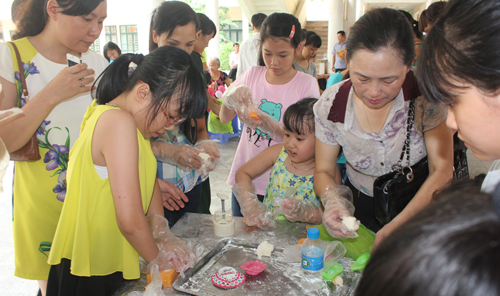 Khu làm bánh vô cùng nhộn nhịp khi thu hút được sự quan tâm của đông đảo các cháu và bậc phụ huynh. Nhiều cháu thể hiện rõ sự ngạc nhiên trên khuôn mặt, không nghĩ rằng mình có thể tự tay làm được những chiếc bánh Trung thu không thua kém gì so với các loại bánh mà các cháu đã thấy cả về hình thức lẫn chất lượng.