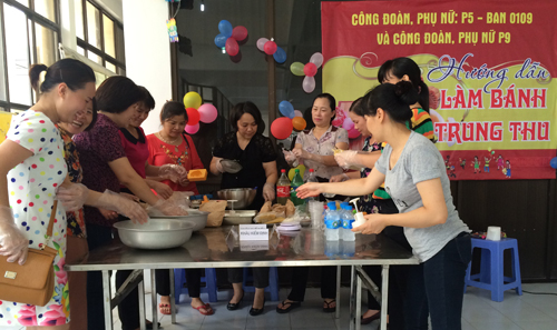 Phong trào tự làm các loại bánh cũng không thực sự còn là mới mẻ. Trong dịp này, các chị, các cô đã học hỏi lẫn nhau các công thức làm bánh, từ truyền thống tới hiện đại, từ bánh nướng tới bánh dẻo… Với những nguyên liệu sẵn có gồm khuôn bánh, bột bánh, nước đường, nhân bánh… Các cô, các mẹ rất tự tin truyền đạt lại cho các con biết cách làm bánh. Trong khi chúng tôi đang miệt mài hướng dẫn các con, một bé gái đứng cạnh mẹ khi tham gia học làm bánh nói: “Tết Trung thu sẽ đong đầy ý nghĩa hơn rất nhiều nếu chúng ta dành chút thời gian tự tay làm những chiếc bánh xinh xắn tặng những người thân yêu. Mỗi chiếc bánh là sự kết tinh của tình cảm chân thành, của trái tim biết yêu thương và sự khéo léo từ đôi bàn tay. Mẹ ơi! Con muốn tết Trung thu này cả nhà mình sẽ cùng nhau làm bánh nhé”. Thật xúc động và muốn trào dâng nước mắt khi các con nghĩ được những điều đó. Và giống như một niềm vui cần được đem “khoe”, các con rất muốn người thân yêu của mình tận mắt thấy được những chiếc bánh do chính các con làm, chính vì vậy, những công đoàn viên, hội viên Hội Phụ nữ đã rất nhiệt tình, hăng say hướng dẫn cho các con tự tay làm được thứ gì đó thể hiện sự khéo tay hay làm của mình.