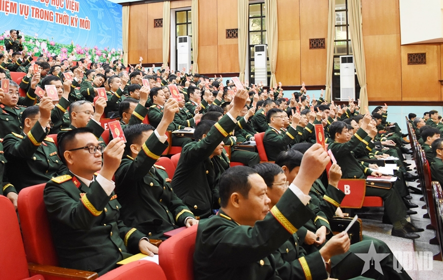 Quán triệt tốt phương châm “Đoàn kết, dân chủ, kỷ cương, đột phá, phát triển”, các đại biểu đã phát huy dân chủ, đề cao trách nhiệm, sáng suốt lựa chọn các đồng chí có đủ phẩm chất, năng lực bầu vào Ban Chấp hành Đảng bộ Học viện nhiệm kỳ 2025-2030 và bầu đoàn đại biểu dự Đại hội đại biểu Đảng bộ Quân đội lần thứ XII.