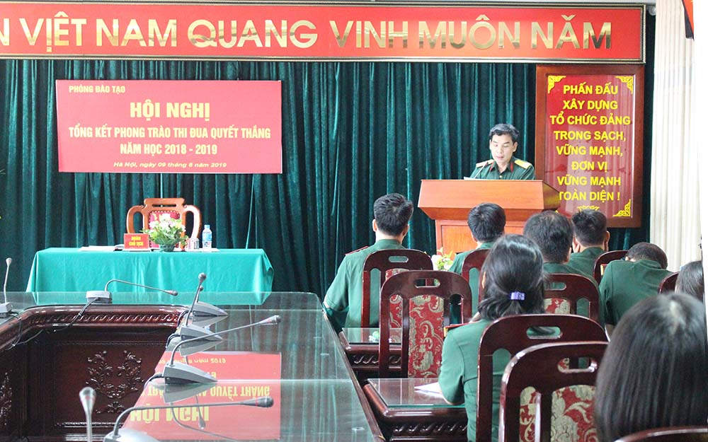 Chiều 09/08/2019, tại Phòng Điều hành huấn luyện nhà S4, Phòng Đào tạo đã tổ chức Hội nghị Tổng kết phong trào thi đua Quyết thắng năm học 2018 – 2019. Đến dự và chỉ đạo Hội nghị có Đại tá Lê Minh Thái – Phó Giám đốc Học viện.