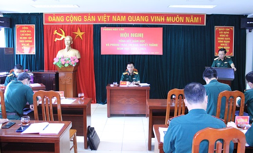 Tại Hội nghị, Đại tá Đinh Anh Tuấn – Phó Chủ nhiệm Hậu cần thay mặt lãnh đạo, chỉ huy Phòng đã trình bày Báo cáo Tổng kết năm học và Báo cáo Tổng kết Phong trào thi đua Quyết thắng năm học 2020 – 2021.