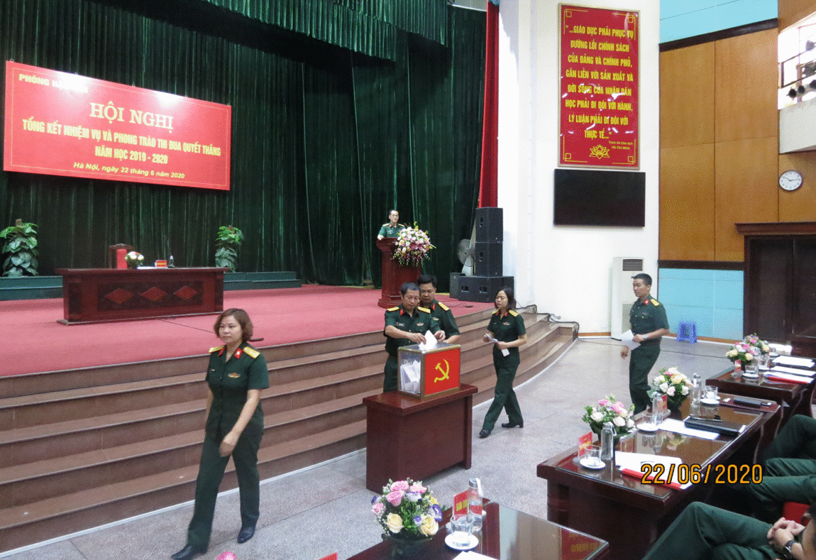 Hội nghị cũng đã tiến hành bỏ phiếu tín nhiệm bầu các tập thể và cá nhân đạt thành tích xuất sắc, tiêu biểu trong Phong trào thi đua Quyết thắng năm học 2019-2020 để đề nghị Học viện khen thưởng, gồm: Đơn vị Quyết thắng cho Ban Xăng dầu; Đơn vị Tiên tiến cho Đội xe Vận tải, Trường Mầm non 28/10 và Bếp khu A; Đơn vị Văn hóa cho Ban Xăng dầu và Đội xe Vận tải cùng danh hiệu Chiến sĩ Thi đua cơ sở cho 20 đồng chí và danh hiệu Chiến sĩ Tiên tiến cho 48 đồng chí.