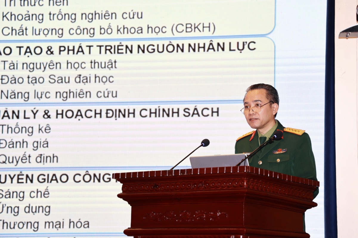 Đại tá GS.TS Nguyễn Hoàng Vũ – Phó Trưởng phòng KHQS đã giới thiệu tổng quan về CSDL IEEE và ASME, hiện đã được tích hợp vào  website Thư viện Trường ĐHKT Lê Quý Đôn (https://library.lqdtu.edu.vn/) trên internet. Đây là 2 nguồn tin KH&CN chất lượng cao, có khả năng phục vụ tốt việc nghiên cứu, phát triển các công nghệ chiến lược, sản phẩm công nghệ chiến lược; làm chủ công nghệ nền, công nghệ lõi; xây dựng, phát triển công nghiệp quốc phòng. Đồng thời, GS Nguyễn Hoàng Vũ cũng chia sẻ những kinh nghiệm thực tiễn trong việc khai thác học liệu số; cách ứng dụng hiệu quả các công cụ AI để phân loại, tóm tắt và trích xuất thông tin từ kho tài liệu toàn văn khổng lồ. Việc sử dụng AI đúng cách không chỉ giúp các nhà nghiên cứu tránh tình trạng “quá tải thông tin” mà còn nâng cao khả năng thẩm định, giảm thiểu nguy cơ tiếp nhận các thông tin sai lệch hoặc thiếu kiểm chứng từ môi trường mạng và từ chính các công cụ AI.