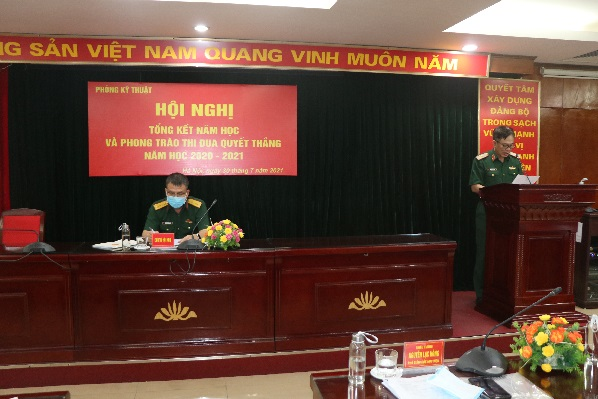 Tại Hội nghị, Đại tá Nguyễn Văn Công – Trưởng phòng Kỹ thuật thay mặt lãnh đạo, chỉ huy Phòng đã trình bày Báo cáo Tổng kết năm học và Báo cáo Tổng kết Phong trào thi đua Quyết thắng năm học 2020 – 2021.