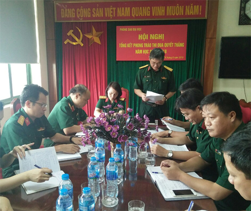 Tại Hội nghị, Đại tá Vũ Quốc Trụ – Trưởng Phòng Sau Đại học đọc bản báo cáo tổng kết năm học 2017 – 2018. Trong bản báo cáo đã nêu rõ những nhiệm vụ chính, thuận lợi, khó khăn và những vấn đề còn hạn chế trong năm học 2017 – 2018, đồng thời đề ra phương hướng, giải pháp thực hiện nhiệm vụ trong năm học 2018 – 2019. Hội nghị nhất trí cao với bản báo cáo tổng kết, tất cả cán bộ, nhân viên trong phòng đã tham gia thảo luận sôi nổi để làm rõ nguyên nhân của những hạn chế và đưa ra giải pháp cụ thể nhằm đạt hiệu quả tốt nhất trong năm học tới.