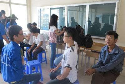 Sinh viên tình nguyện hướng dẫn cho thí sinh và người nhà