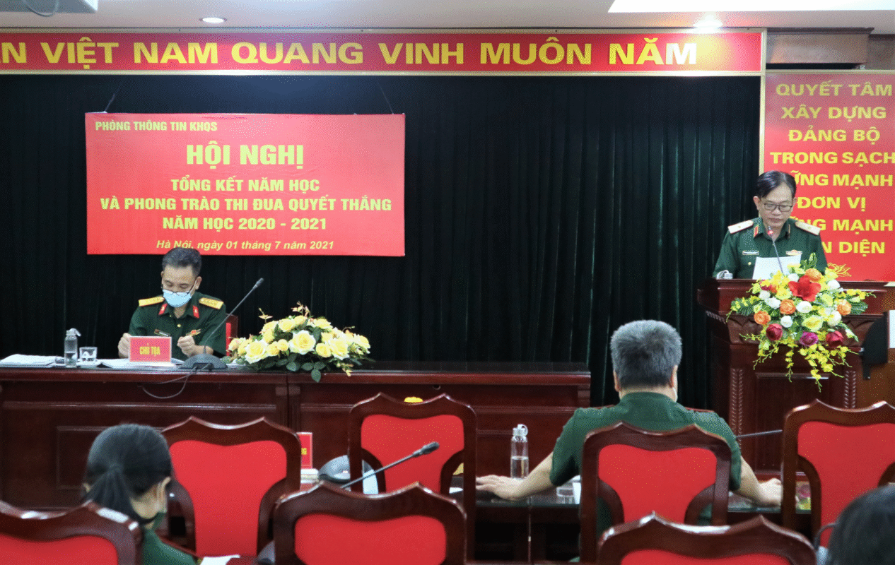 Hội nghị Tổng kết năm học và Phong trào thi đua quyết thắng năm học 2020-2021 của Phòng Thông tin KHQS đã thành công tốt đẹp. Phát huy những thành tích đạt được trong năm học vừa qua, cán bộ, nhân viên Phòng Thông tin KHQS quyết tâm hoàn thành tốt nhiệm vụ năm học 2021-2022.