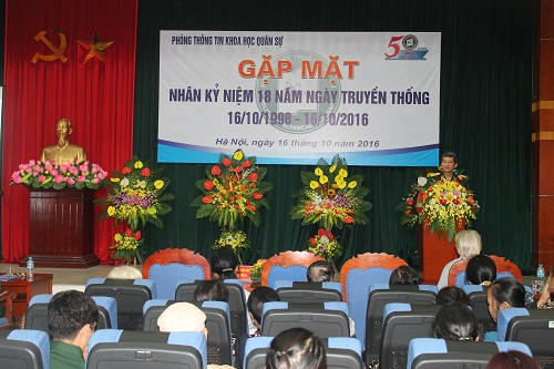 Tại buổi gặp mặt, Đại tá Hoàng Văn Lợi – Trưởng Phòng Thông tin KHQS đã Báo cáo khái quát quá trình xây dựng, phát triển và những thành tích tiêu biểu của Phòng Thông tin KHQS. Đồng chí khẳng định: Trên chặng đường 50 năm xây dựng và phát triển cùng Học viện, có lúc thăng, lúc trầm, lúc tách ra rồi sáp nhập nhưng 50 năm ấy các thế hệ cán bộ, nhân viên của Phòng Thông tin KHQS luôn hướng về phía trước, nối tiếp nhau thực hiện thắng lợi các nhiệm vụ mà quân đội và Học viện giao cho, viết nên các trang sử truyền thống vẻ vang, đầy tự hào của Phòng Thông tin KHQS, góp phần tô thắm thêm truyền thống Học viện KTQS Anh hùng. Có được truyền thống vẻ vang như ngày hôm nay ngoài sự đoàn kết, thống nhất nỗ lực cố gắng của các thế hệ cán bộ, nhân viên trong Phòng còn có sự quan tâm, lãnh đạo, chỉ đạo sâu sát của Đảng ủy, Ban Giám đốc Học viện, sự phối hợp, giúp đỡ của các cơ quan đơn vị trong và ngoài Học viện. Thay mặt tập thể cán bộ, nhân viên Phòng Thông tin KHQS, Đồng chí cũng bày tỏ lòng biết ơn sâu sắc tới Đảng uỷ, Ban Giám đốc Học viện qua các thời kỳ, các cơ quan đơn vị trong và ngoài Học viện đã tạo điều kiện, giúp đỡ trong suốt chặng đường xây dựng và phát triển của Phòng.