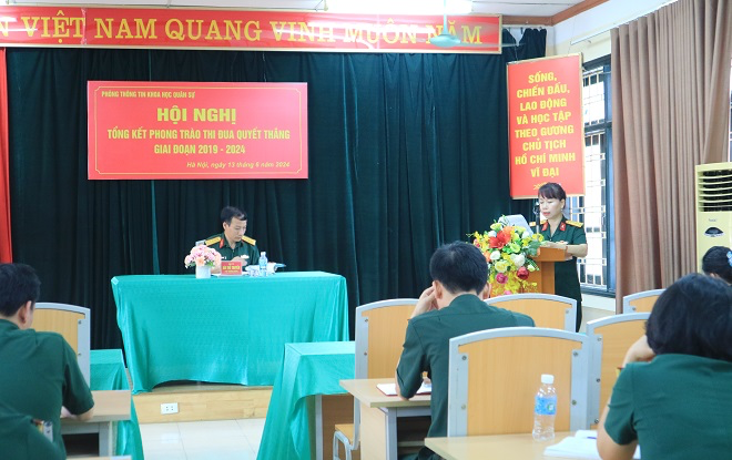 Báo cáo Tổng kết công tác Thi đua khen thưởng (TĐKT) và phong trào TĐQT giai đoạn 2019-2024 do Đại tá Đỗ Thị Ngọc Diệp – Đảng ủy viên, Phó Trưởng phòng Thông tin KHQS trình bày khẳng định: 5 năm qua, công tác TĐKT và phong trào TĐQT của Phòng Thông tin KHQS đã được Đảng ủy, Chi bộ và chỉ huy các cấp quan tâm lãnh đạo, chỉ đạo, tổ chức triển khai thực hiện chặt chẽ, thường xuyên, liên tục, phù hợp với đặc thù yêu cầu nhiệm vụ và có bước phát triển toàn diện; là động lực quan trọng để đơn vị thực hiện tốt chức năng tham mưu, tổ chức thực hiện công tác Thông tin KHQS tại Học viện KTQS. Cán bộ, nhân viên có bản lĩnh chính trị vững vàng, yên tâm công tác; các tổ chức Đảng giữ vững và phát huy được vai trò hạt nhân lãnh đạo, có năng lực lãnh đạo toàn diện, sức chiến đấu cao; toàn đơn vị có khí thế thi đua sôi nổi.