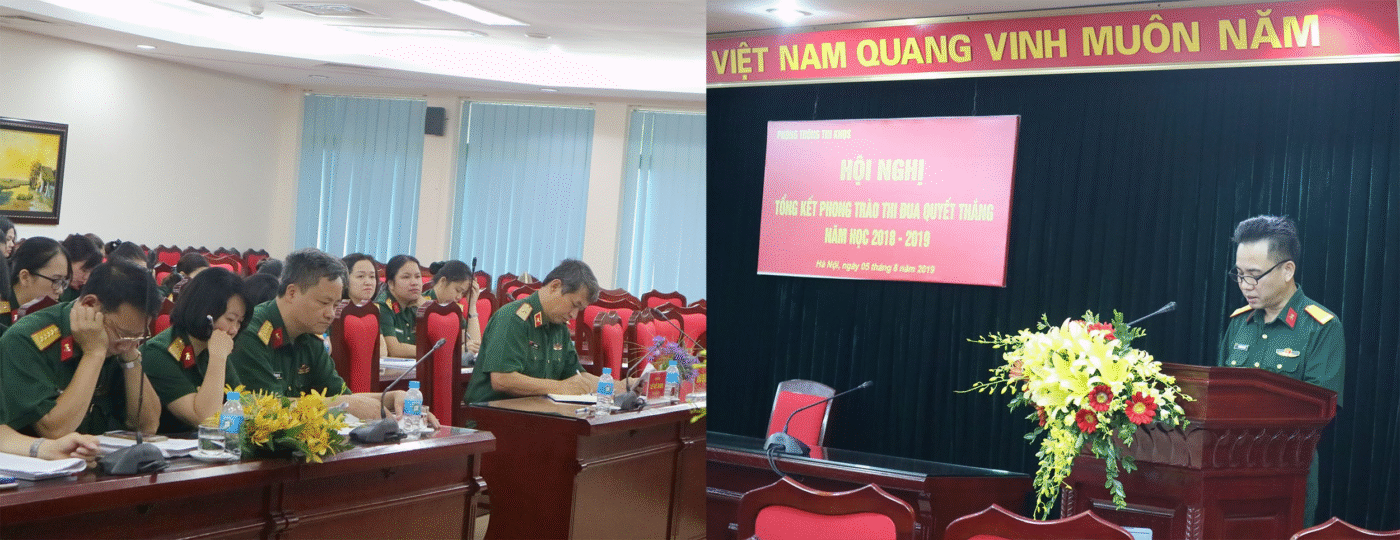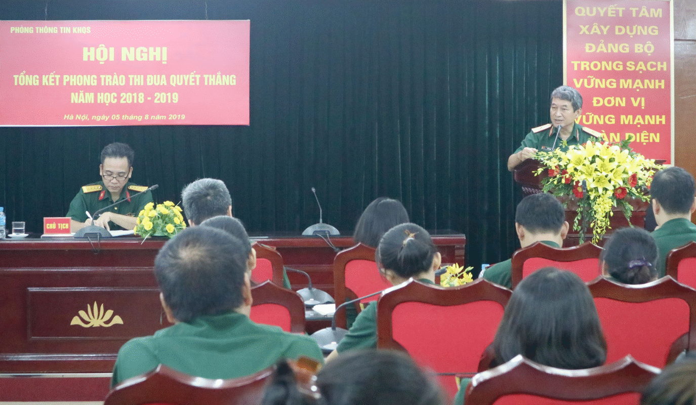 Hội nghị Tổng kết phong trào thi đua Quyết thắng năm học 2018 – 2019 của Phòng Thông tin KHQS đã thành công tốt đẹp. Phát huy những thành tích đạt được trong năm học vừa qua, cán bộ, nhân viên Phòng Thông tin KHQS quyết tâm hoàn thành tốt nhiệm vụ năm học 2019 – 2020.