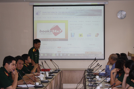 Sáng 13/10, Phòng Thông tin Khoa học Quân sự cùng đại diện các đơn vị Trung tâm CNTT, Phòng Kỹ thuật đã đến tham quan và làm việc tại Trung tâm Thông tin – Thư viện (TT), ĐHQGHN. Trưởng đoàn tham quan Đại tá, TS Hoàng Văn Lợi – Trưởng phòng Thông tin KHQS cùng các cán bộ nhân viên trong đoàn đã có những trao đổi kinh nghiệm giữa hai bên.