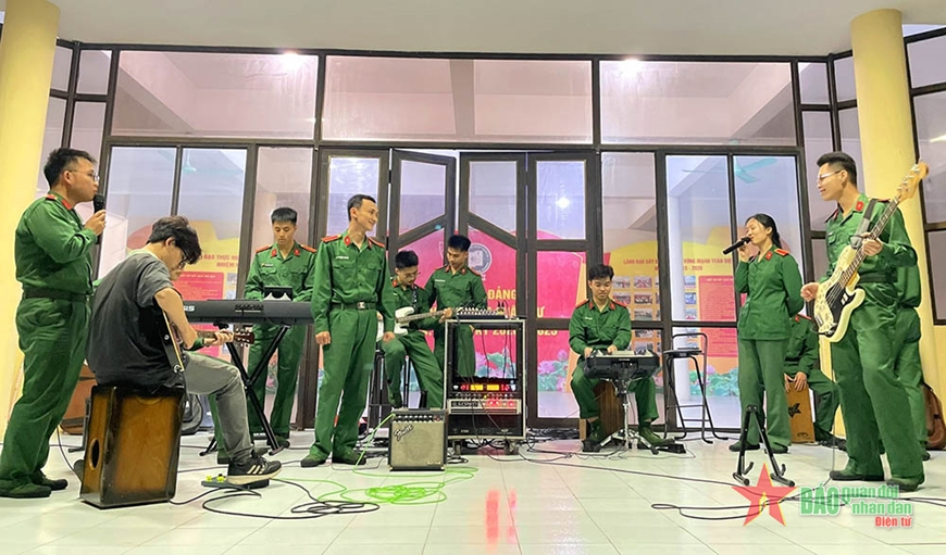 Đằng sau cặp kính là ánh mắt lấp lánh reo vui của Trung sĩ Huỳnh Minh Danh – học viên Lớp vũ khí 2, Đại đội 255, Tiểu đoàn 2 khi đang hòa nhịp cùng đồng đội. Yêu ca hát từ nhỏ, khi trở thành học viên, Minh Danh phấn khởi đăng ký tham gia CLB guitar. Gần 4 năm gắn bó, Danh đã có nhiều trải nghiệm thú vị khi được thỏa niềm đam mê với âm nhạc. Có thời điểm anh đảm nhiệm vai trò là chủ nhiệm CLB, tổ chức nhiều hoạt động sôi nổi. “Là học viên năm cuối, chuẩn bị đi thực tập nên tôi bàn giao phụ trách CLB cho đồng chí khóa sau. Tôi sẽ tiếp tục hỗ trợ các hoạt động trong thời gian học tập với mong muốn CLB hoạt động hiệu quả”, Trung sĩ Huỳnh Minh Danh chia sẻ.