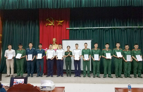 Tiếp theo chương trình, Thiếu tá Lê Thị Tố Hoa – Phó Chủ nhiệm Bộ môn Tiếng Nga lên trao chứng chỉ cho các học viên tham gia kỳ thi Test TruD diễn ra tại trường Đại học Ngoại ngữ, Đại học Quốc gia Hà Nội. Học viên Triệu Minh Tâm – Lớp DKNN53 tham dự cuộc thi và đạt giải Khuyến khích.