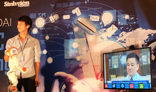 Sinh viên Đặng Minh Đức đại diện SMAC-MTA thuyết trình về ứng dụng “Trợ lý ảo cho Tivi”.