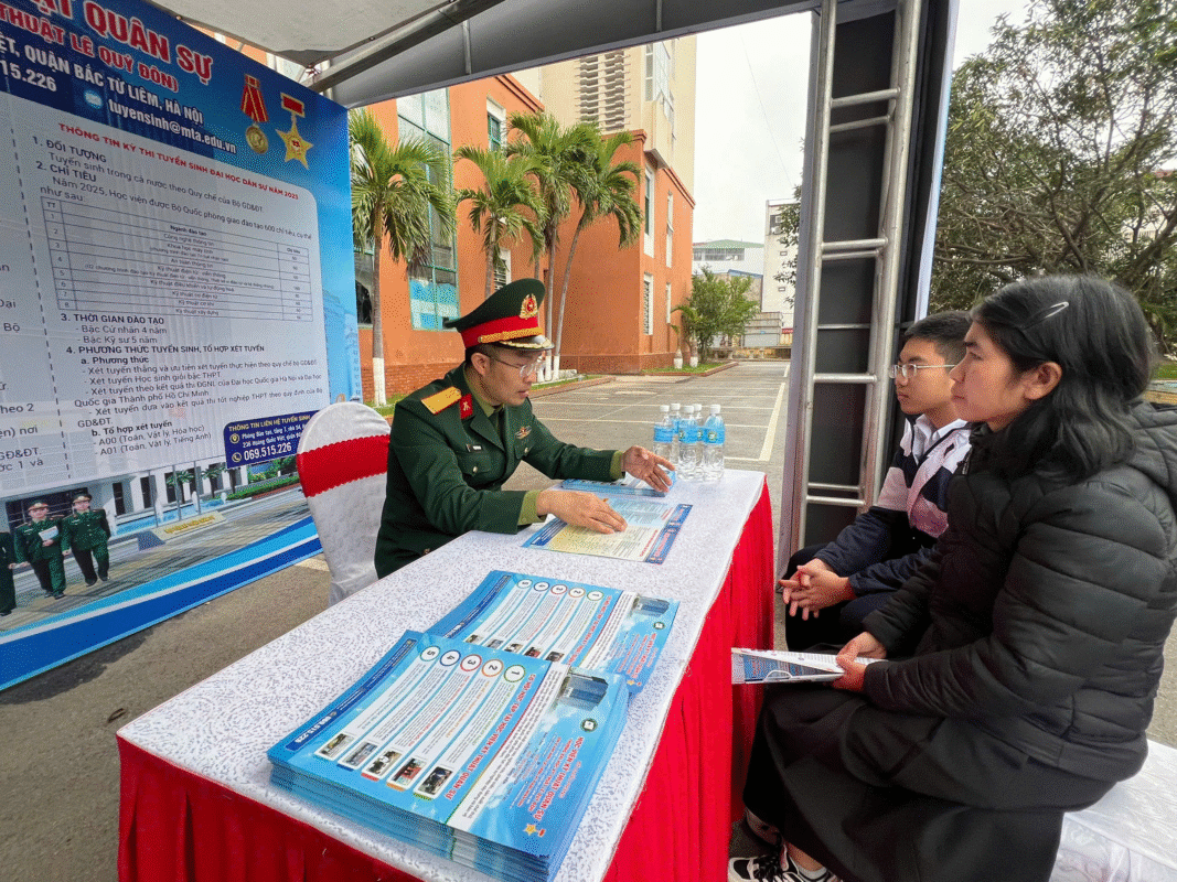 Đồng thời, giới thiệu cho các em cơ hội học tập, các thông tin chương trình đào tạo đối tượng Kỹ sư quân sự tài năng và tạo nguồn nước ngoài. Khi trúng tuyển vào Học viện các em có cơ hội cử đi học tập ở các trường đại học uy tín tại nước ngoài, năm 2025 Bộ Quốc phòng giao Học viện tuyển 360 chỉ tiêu trong đó 180 chỉ tiêu đào tạo tại nước ngoài, 05 chỉ tiêu đào tạo ngoài quân đội, 175 chỉ tiêu đào tạo tại Học viện trong đó có 30 chỉ tiêu đào tạo kỹ sư chất lượng cao của 02 ngành Thông tin và An ninh hệ thống thông tin.
