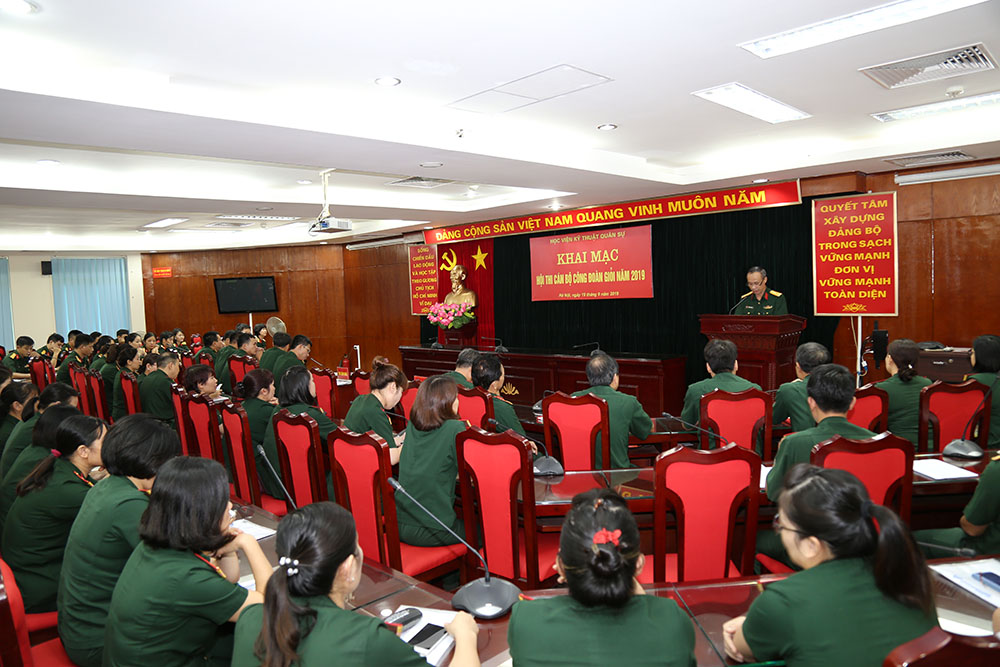 Hoà chung khí thế thi đua của toàn Đảng, toàn quân chào mừng 74 năm Cách mạng tháng Tám và Quốc khánh 2/9, 50 năm thực hiện di chúc của Chủ tịch Hồ Chí Minh; thiết thực lập thành tích chào mừng năm học mới và hướng tới kỷ niệm 53 năm Ngày Truyền thống Học viện KTQS anh hùng (28/10/1966 – 20/8/2019), Học viện đã tổ chức Hội thi Cán bộ công đoàn giỏi năm 2019.