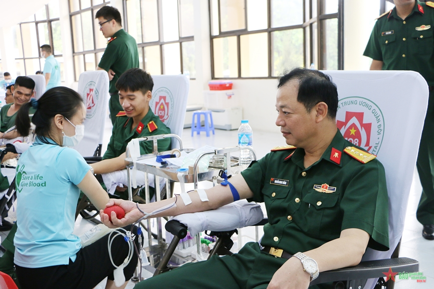 Lãnh đạo Học viện KTQS tham gia hiến máu tại chương trình