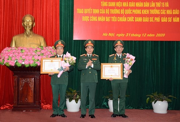 Sáng 31/12, Bộ Quốc phòng tổ chức Lễ công bố quyết định Tặng danh hiệu Nhà giáo nhân dân (NGND) lần thứ 15 và trao quyết định của Bộ trưởng Bộ Quốc phòng khen thưởng các nhà giáo quân đội được công nhận tiêu chuẩn chức danh giáo sư, phó giáo sư (GS, PGS) năm 2020.