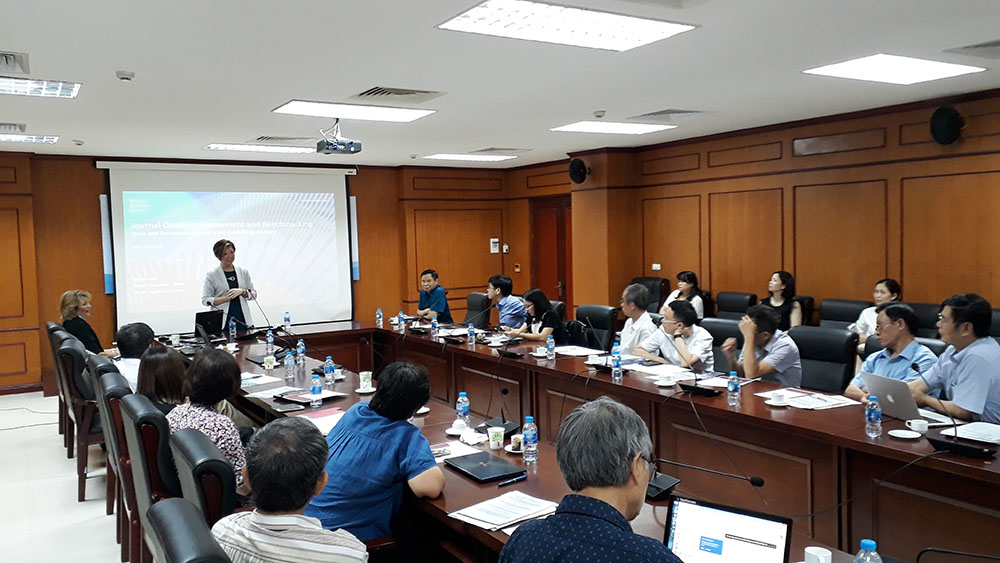 Hội thảo cũng đã được nghe báo cáo về việc cải thiện chất lượng và chuẩn hoá quy trình đánh giá tạp chí của WoS do Tư vấn viên, Bà Dju-Lyn Chng trình bày. Các đại biểu tham dự Hội thảo thảo luận sôi nổi về các vấn đề liên quan đến việc tăng sự hiện diện các tạp chí khoa học Việt Nam trên bản đồ khoa học thế giới.