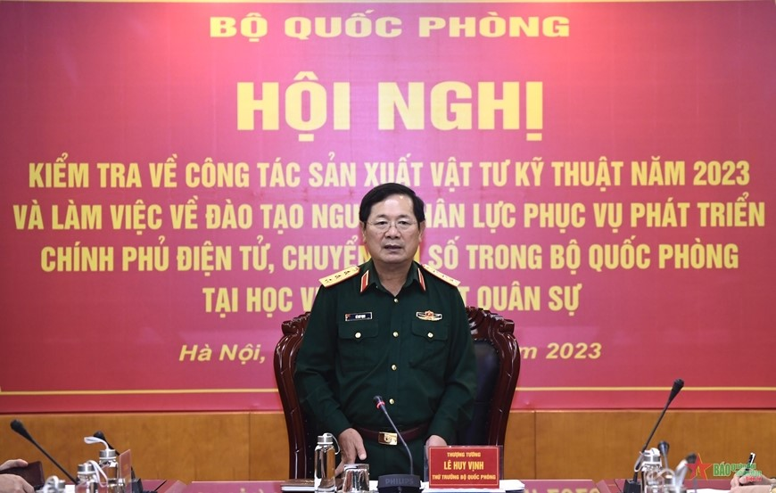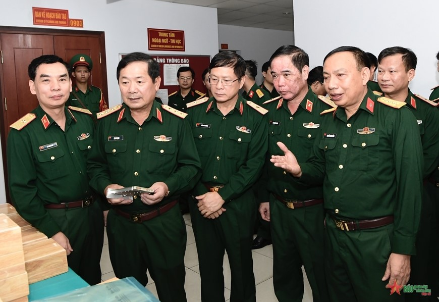 Phát biểu kết luận buổi làm việc, Thượng tướng Lê Huy Vịnh biểu dương, đánh giá cao tinh thần nỗ lực của Học viện trong quá trình thực hiện nhiệm vụ. Trong đó, kết quả thực hiện nhiệm vụ nghiên cứu, sản xuất VTKT bảo đảm trang bị kỹ thuật toàn quân năm 2023 do Học viện đảm nhiệm đạt nhiều kết quả tích cực. Học viện đã quan tâm lãnh đạo, chỉ đạo, xác định nhiệm vụ đào tạo nguồn nhân lực bảo đảm cho phát triển Chính phủ điện tử, CĐS trong BQP là một trong những nhiệm vụ trọng tâm; đã chủ động rà soát, xây dựng, cập nhật, bổ sung nội dung chương trình đào tạo các cho các đối tượng về phát triển Chính phủ điện tử và CĐS theo quy định của Nhà nước, BQP; quản lý, điều hành huấn luyện, đào tạo chặt chẽ, khoa học, bảo đảm an toàn tuyệt đối.