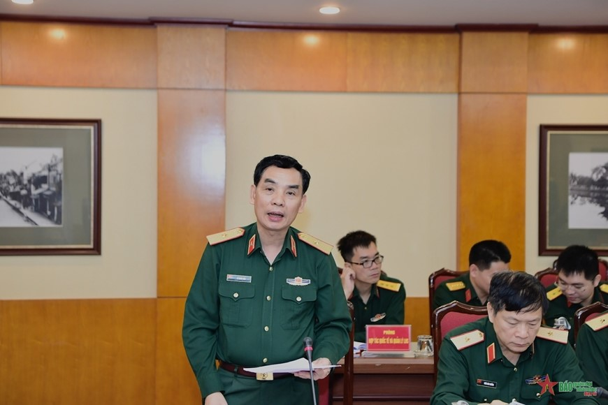 Phát biểu mở đầu buổi làm việc, Thượng tướng Lê Huy Vịnh nhấn mạnh, nhiệm vụ nghiên cứu, sản xuất VTKT bảo đảm cho trang bị kỹ thuật toàn quân; nhiệm vụ đào tạo nguồn nhân lực phục vụ CĐS, cải cách thủ tục hành chính là nhiệm vụ quan trọng. Trong đó, Học viện KTQS là một trong những đầu mối thực hiện các nhiệm vụ này. Đồng chí Thứ trưởng BQP đề nghị các ý kiến tại buổi làm việc cần tập trung làm rõ những thuận lợi, khó khăn trong thực hiện nhiệm vụ nghiên cứu, sản xuất VTKT; đào tạo nguồn nhân lực phục vụ CĐS; rà soát, đề xuất những giải pháp, hoàn thiện những quy định liên quan, tạo điều kiện thuận lợi cho các hoạt động này tại Học viện.