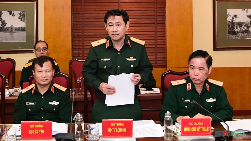 Tại buổi làm việc, Thiếu tướng Lê Minh Thái – Giám đốc Học viện KTQS đã báo cáo kết quả thực hiện nhiệm vụ nghiên cứu, sản xuất VTKT bảo đảm trang bị kỹ thuật toàn quân năm 2023 do Học viện thực hiện; báo cáo kết quả đào tạo nguồn nhân lực phục vụ phát triển Chính phủ điện tử, CĐS trong BQP.