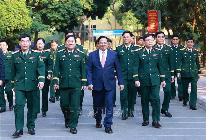 Thủ tướng Phạm Minh Chính thăm Học viện KTQS (Ảnh: Dương Giang/TTXVN)