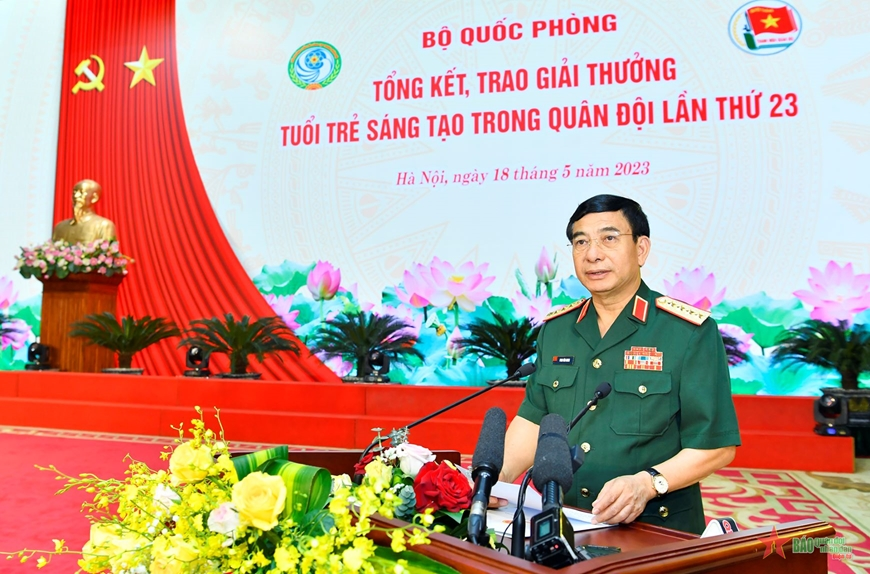 Thay mặt QUTƯ, lãnh đạo BQP và tuổi trẻ Quân đội, Đại tướng Phan Văn Giang trân trọng cảm ơn đồng chí Thủ tướng Chính phủ, đồng chí Thường trực Ban Bí thư, Trưởng ban Tổ chức Trung ương đã dành thời gian đến dự tổng kết, trao Giải thưởng Tuổi trẻ sáng tạo trong Quân đội lần thứ 23. Đồng chí Thủ tướng đã phát biểu động viên, chỉ đạo chương trình. Đây là sự quan tâm, chăm lo đặc biệt của Đảng, Nhà nước, Chính phủ đối với Quân đội nhân dân Việt Nam và thanh niên Quân đội.