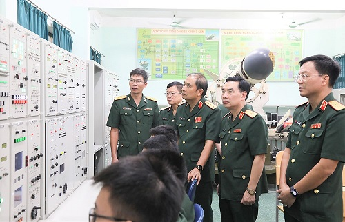 Thượng tướng Phùng Sĩ Tấn và các đại biểu thăm quan giờ thực hành của các học viên Học viện KTQS