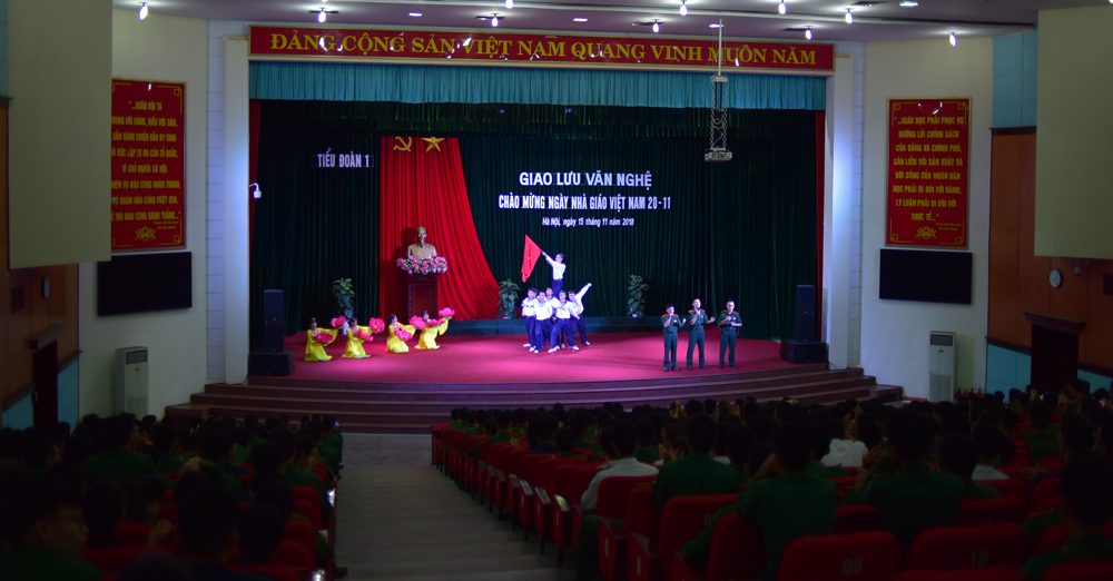 Hòa chung không khí thi đua sôi nổi chào mừng 36 năm Ngày Nhà giáo Việt Nam (20/11/1982 – 20/11/2018), cán bộ, học viên Tiểu đoàn 1 đã và đang có nhiều hoạt động hưởng ứng trên tất cả các lĩnh vực, từ học tập, NCKH đến rèn luyện kỷ luật, xây dựng nề nếp chính quy, văn hóa văn nghệ, thể dục thể thao… Nằm trong chuỗi hoạt động đó, tối 15/11 tại Hội trường S5, Tiểu đoàn 1 đã tổ chức Giao lưu văn nghệ chào mừng Ngày Nhà giáo Việt Nam 20/11.