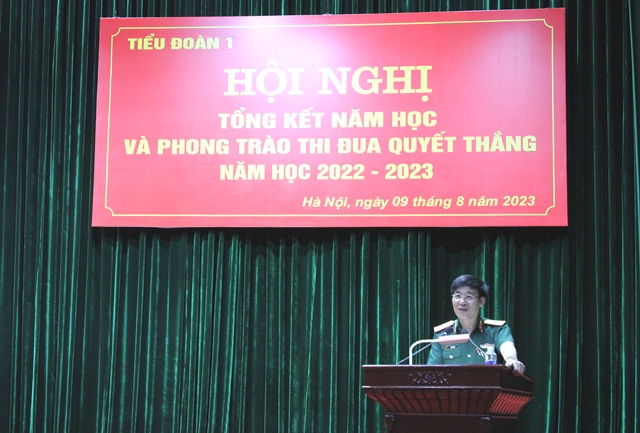 Thượng tá Vũ Văn Mùi – Phó Bí thư Đảng ủy, Tiểu đoàn trưởng đã trình bày Báo cáo Tổng kết năm học 2022 – 2023; Đại tá Lưu Văn Thêm – Bí thư Đảng ủy, Chính trị viên Tiểu đoàn trình bày Báo cáo Tổng kết Phong trào thi đua Quyết thắng năm học 2022-2023 và gợi ý một số nội dung thảo luận.