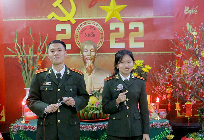 Tham gia chương trình đón Xuân Nhâm Dần 2022 có sự hiện diện của các đồng chí trong Đảng ủy, Ban giám đốc Học viện; đại diện các cơ quan, phòng ban chức năng trong Học viện cùng các đồng chí trong ban chỉ huy Tiểu đoàn, Đại đội và đại diện các học viên, nhân viên, chiến sĩ ở lại trực Tết, đón Tết tại đơn vị. Chương trình đón Xuân Nhâm Dần gồm rất nhiều nội dung như: giao lưu văn nghệ, hái hoa dân chủ, xem video nhìn lại một năm… Các nội dung diễn ra rất hấp dẫn, sôi nổi tạo không khí vui tươi, phấn khởi chào đón năm mới; bên cạnh đó phần chiếu những đoạn video clip, những file ghi âm lời nhắn gửi, lời chúc và động viên từ gia đình được gửi tới đơn vị tạo nên không khí vô cùng xúc động.