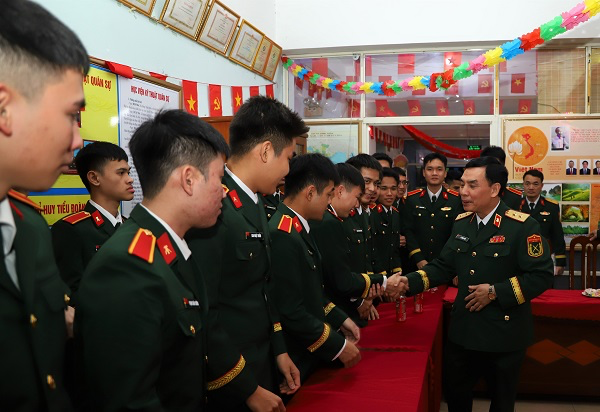 Cũng trong thời khắc thiêng liêng chuẩn bị chào đón năm mới, đơn vị rất vinh dự được Trung tướng PGS. TS Lê Minh Thái – Phó Bí thư Đảng uỷ, Giám đốc Học viện, cùng đại diện chỉ huy Phòng Chính trị, Văn Phòng đến thăm và chúc Tết đơn vị. Đồng chí Giám đốc Học viện đã thay mặt Đảng uỷ, Ban Giám đốc Học viện gửi lời chúc Tết và lời hỏi thăm, động viên ân cần, chứa chan tình cảm đến với cán bộ, học viên, chiến sĩ làm nhiệm vụ trực Tết của Tiểu đoàn.