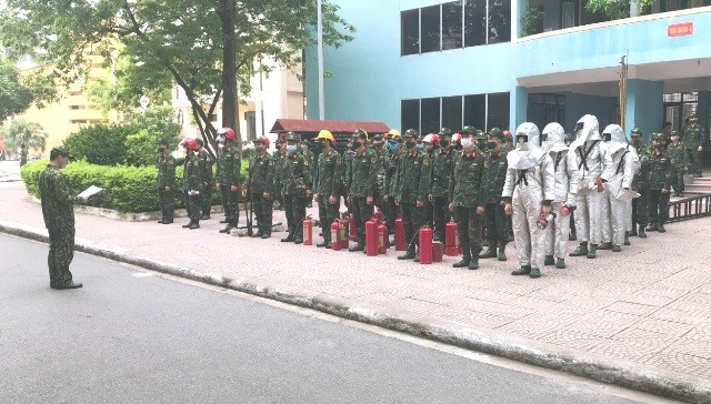 Tại buổi luyện tập, với tình huống giả định cháy ở tầng 2 khu vực nhà H4 của Học viện. Vận dụng theo phương châm 4 tại chỗ (chỉ huy tại chỗ, lực lượng tại chỗ, phương tiện tại chỗ và hậu cần tại chỗ), dứt khẩu lệnh của người chỉ huy, tín hiệu báo cháy vang lên, chưa đầy 03 phút, phân đội phòng, chống cháy nổ của Tiểu đoàn 4 đã nhanh chóng cơ động triển khai đội hình, sử dụng xe chữa cháy, bình cứu hỏa và hệ thống cứu hỏa từ khu kỹ thuật, kết hợp dụng cụ chữa cháy tiến hành dập lửa, không cho đám cháy lan rộng, sơ tán người, tài sản đến nơi an toàn. Các lực lượng đã phối hợp chặt chẽ, sử dụng các thiết bị chữa cháy để khống chế và dập tắt đám cháy, tổ chức sơ cứu những người bị thương, vận chuyển toàn bộ tài sản trong kho ra ngoài. Sau 15 phút, với sự chỉ huy quyết đoán của đồng chí phân đội trưởng và tinh thần tích cực, quyết tâm của lực lượng chữa cháy, đám cháy đã được dập tắt.